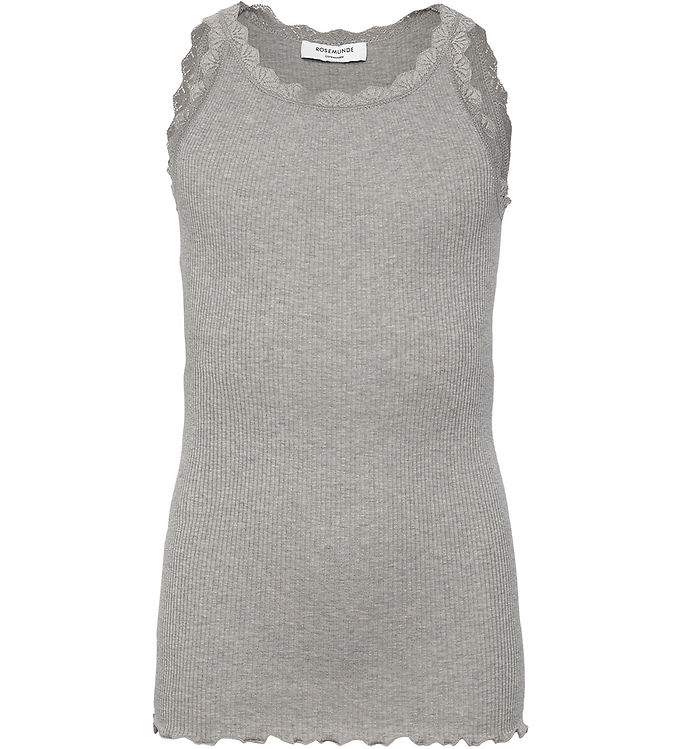 Rosemunde Top - Lang - Rib - Balta - Gråmeleret m. Blonder
