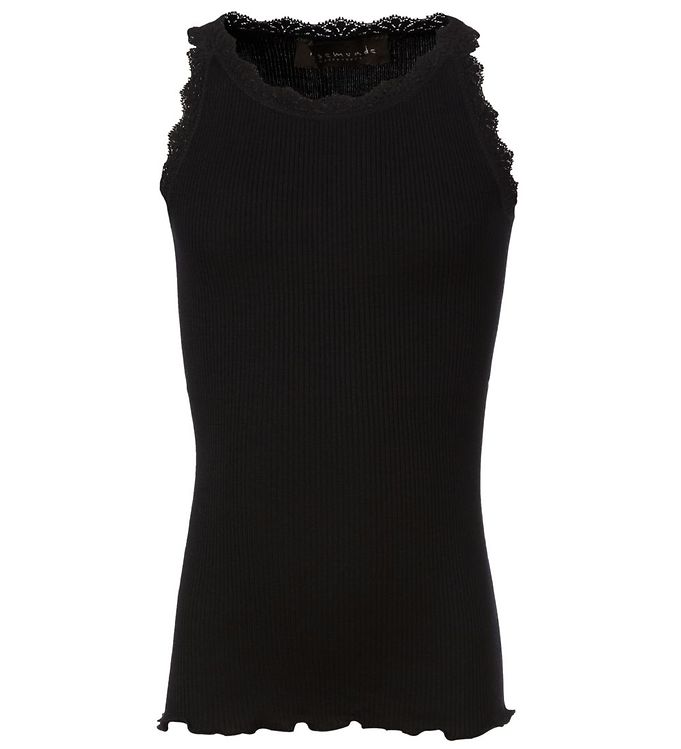 Rosemunde Top - Lang - Silke/Bomuld - Sort m. Blonder