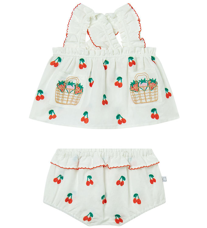 Stella McCartney Kids Sommersæt - Top/Bloomers - Ivory m. Kirsebær