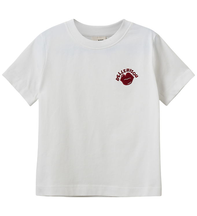 Udforsk den stilfulde Sofie Schnoor T-shirt - LunaSY, der kombinerer elegance og komfort i et unikt design. Denne T-shirt i Brilliant White med rød detalje er ideel til både hverdag og fest.
