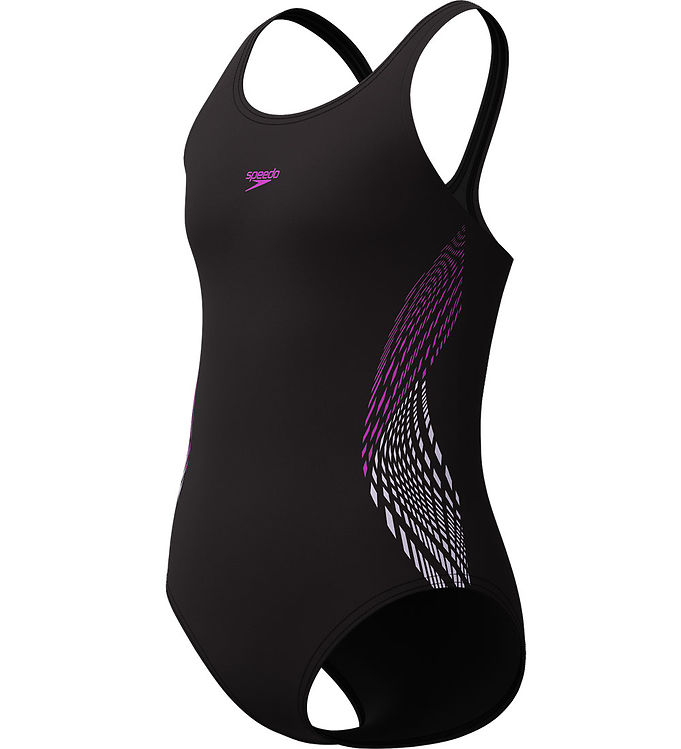 Speedo Badedragt - Placement Muscleback - Sort m. Lilla