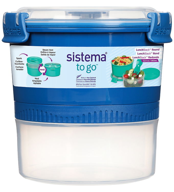 Sistema Madkasse m. Bestik - Lunch Stack - 965 ml - Blå