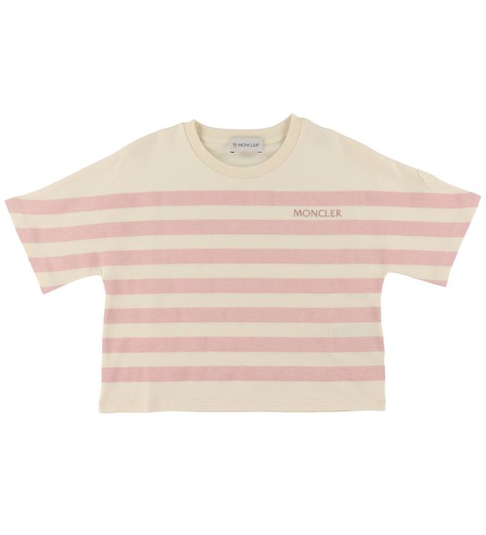 Moncler T-shirt - Cropped - Rosa/Cremestribet