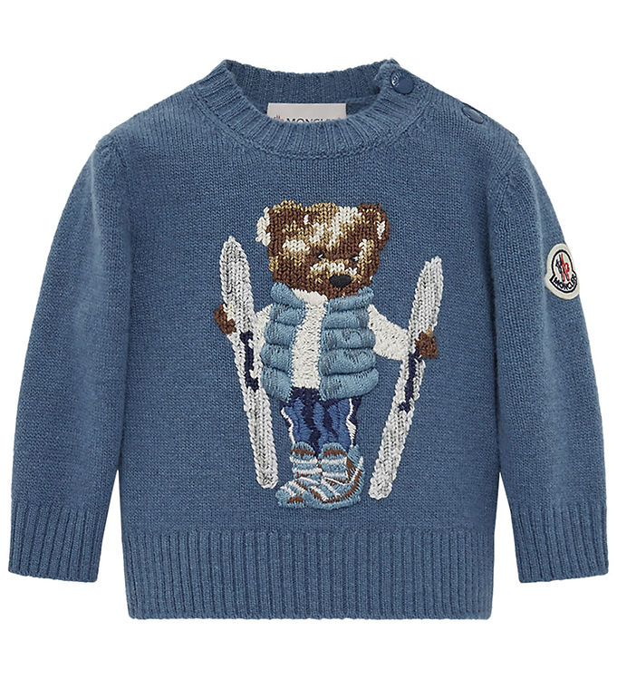 Moncler Bluse - Uld - Medium Blue m. Bamse