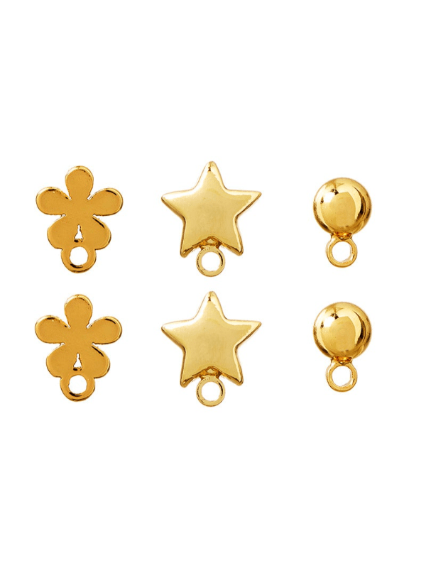 me&my BOX Ørestikker 3 Par - Guldbelagt 18K Design dine egne øreringe, med denne pakke får du 3 lækre sæt øreknopper, som du kan dekorere med perler og tråd. Øreringene er 18K forgyldte og nikkel og blyfri. Det er kun fantasien, der sætter grænserne for,