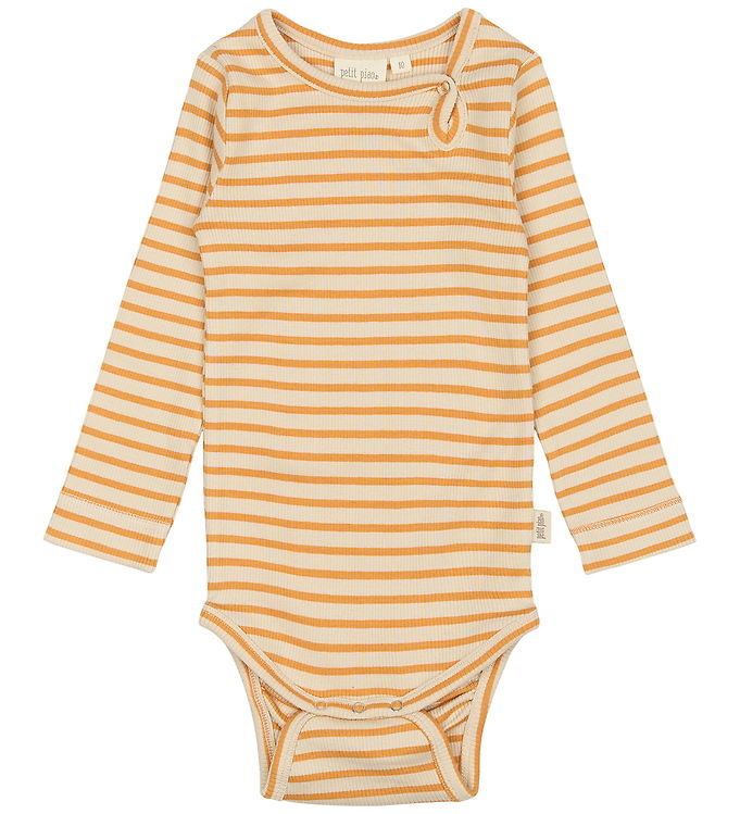 Petit Piao Body l/æ - Rib - Modal - Sunflower/Off White