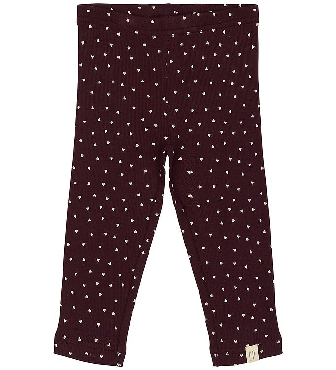 Petit Piao Leggings - Rib - Modal - Dark Grape m. Hjerter