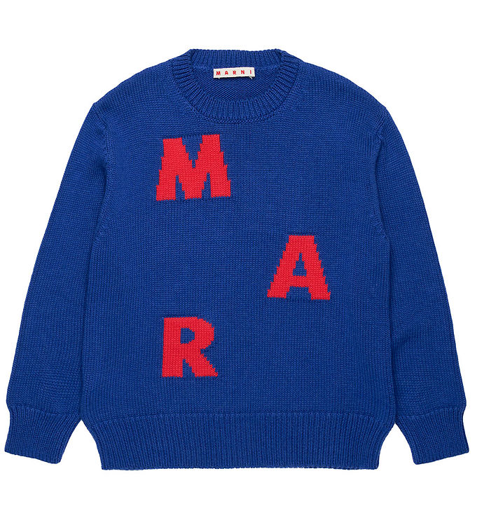Marni Bluse - Bomuld/Uld - True Blue m. Rød