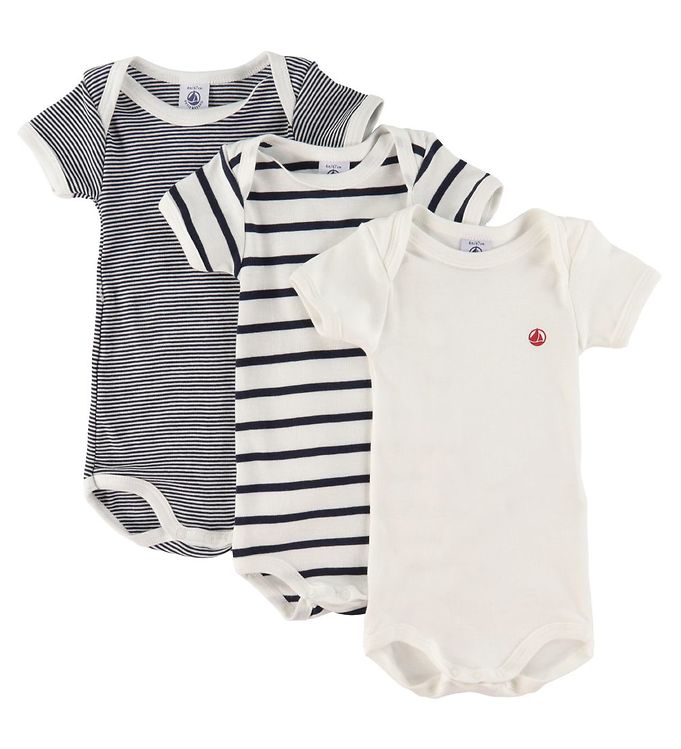 Petit Bateau Bodyer k/æ - 3-pak - Hvid/Navystribet