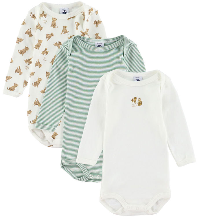 Petit Bateau Body l/æ - 3-pak - Hvid/Grøn