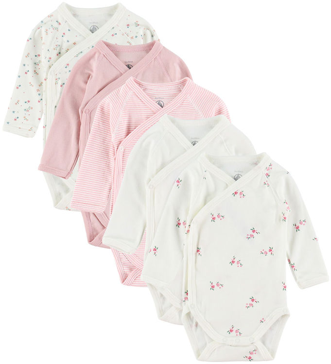 Petit Bateau Slå-om Body l/æ - 5-pak - Hvid/Rosa