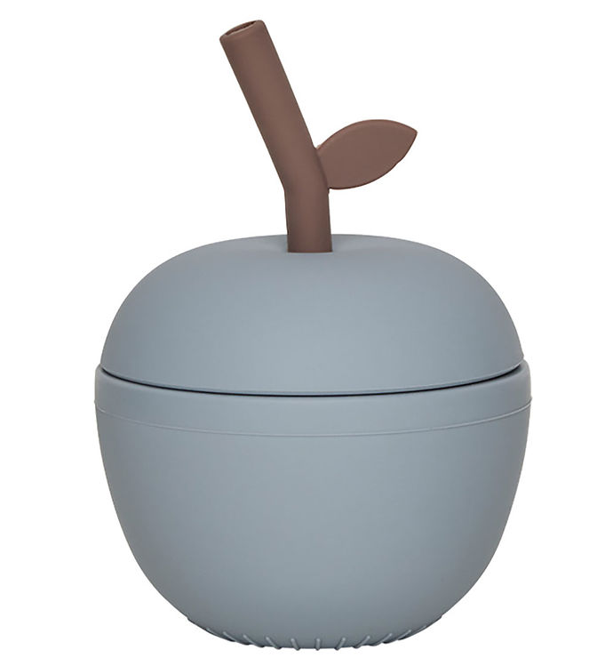 OYOY Kop m. Sugerør - Æble - Silikone - Dusty Blue