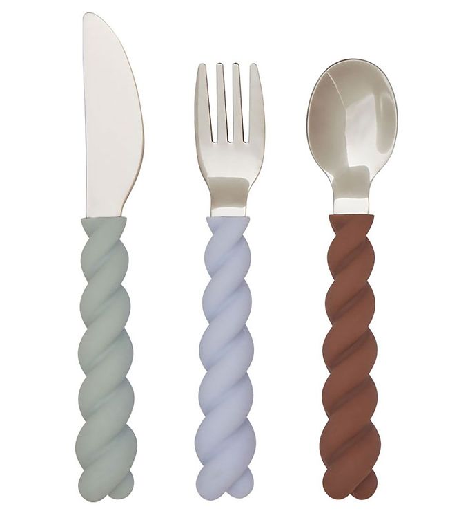 OYOY Bestik - Silikone - 3 dele - Mellow Cutlery - Pale Mint/Cho