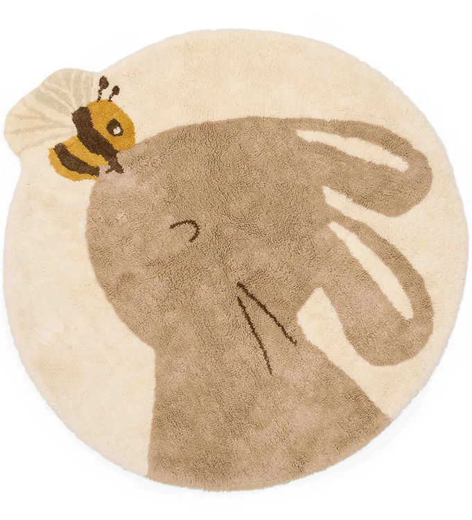 Little Dutch Gulvtæppe - 110x110 cm - Beige m. Kanin/Bi