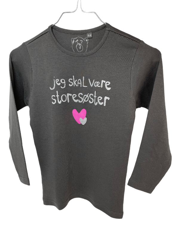 Storesøster T-Shirt L/S Vi har i en længere periode haft mange forespørgsler på Storesøster T-Shirts. Og udover at designe denne "Jeg skal være storesøster" T-Shirts, tilbyder vi også en #Storesøster T-Shirt, som kan benyttes af den stolte