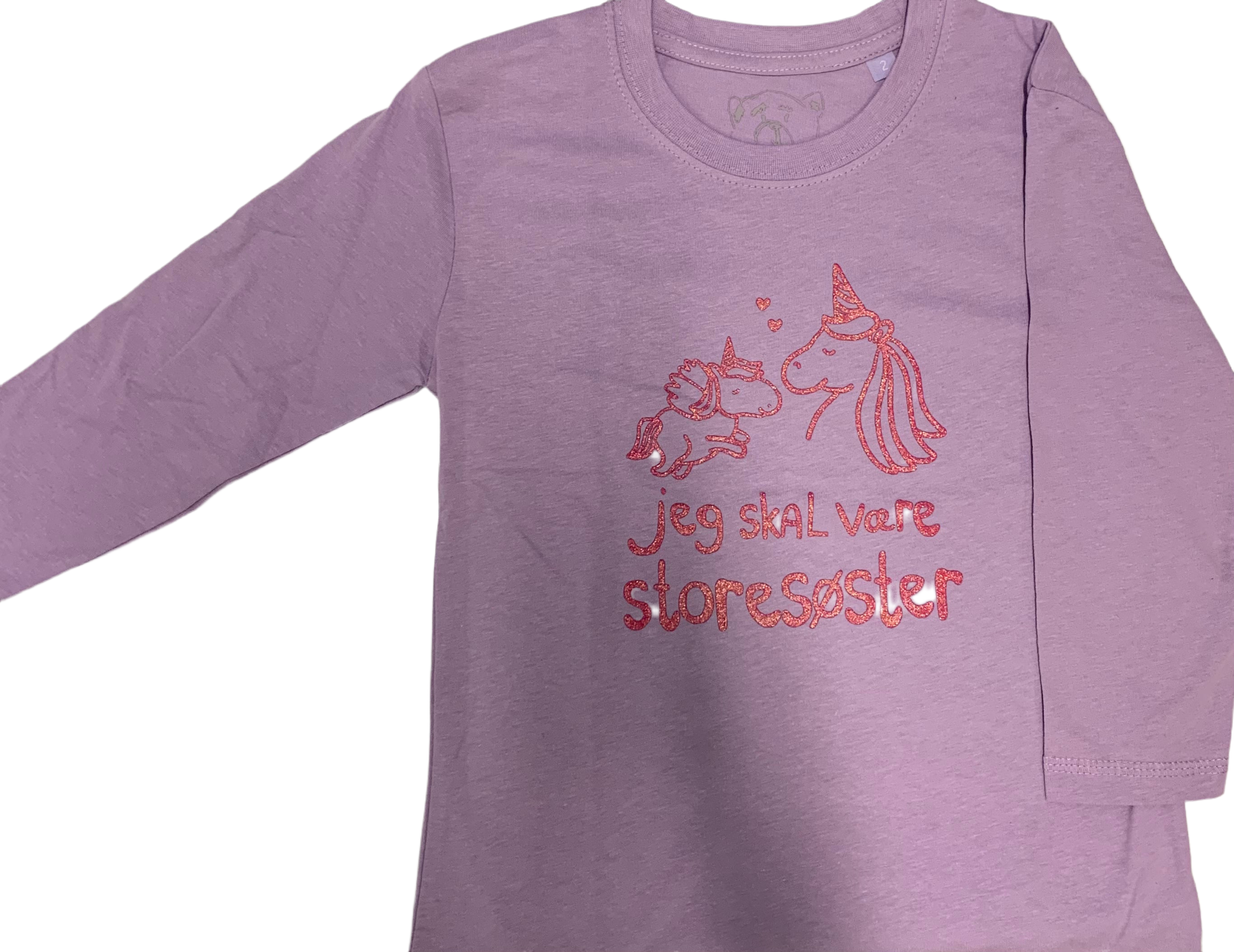 Storesøster T-Shirt L/S Enkel og lækker storesøster bluse med det fineste tryk i Pink Krystalina, med en stor enhjørning som symboliserer storesøster, og en lille som symboliserer den kommende lillebror eller lillesøster. Vi har i en længere periode haft