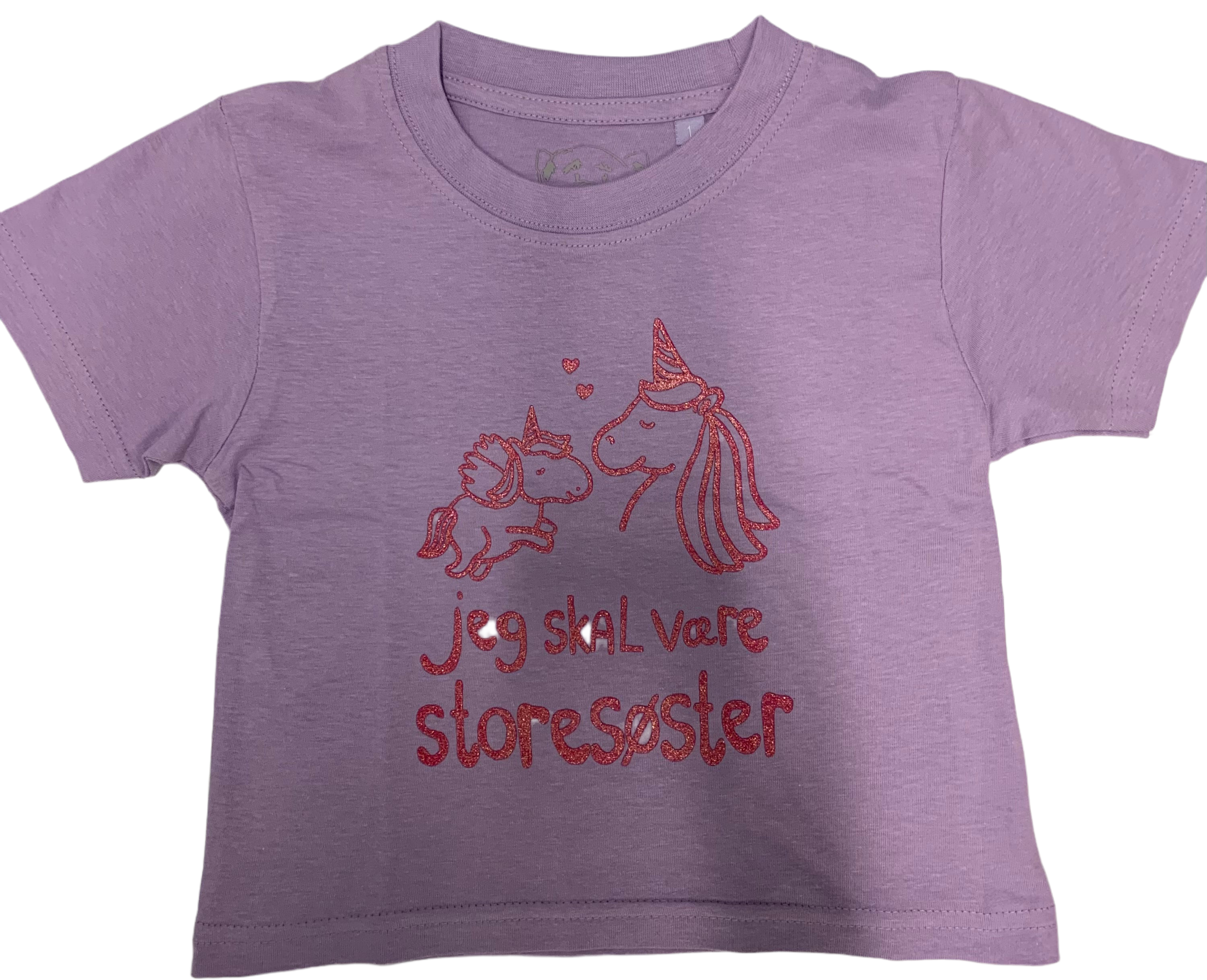 Jeg Skal Være Storesøster T-shirt S/S Enhjørning Lavender Med Lilla Krystalina Tryk - Jeg skal være storesøster T-Shirt - Legekammeraten.dk