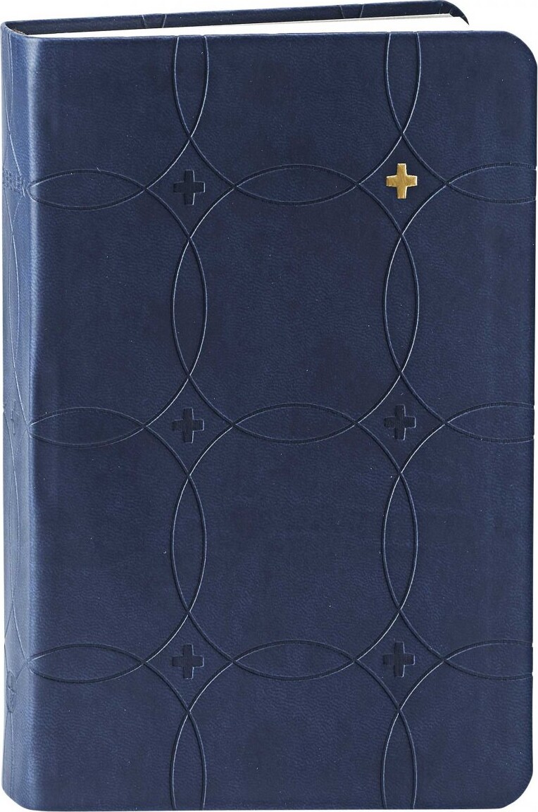 i blødt kunstlæder med blindpræg, blå med guldkors. Bibelen i den autoriserede oversættelse fra...