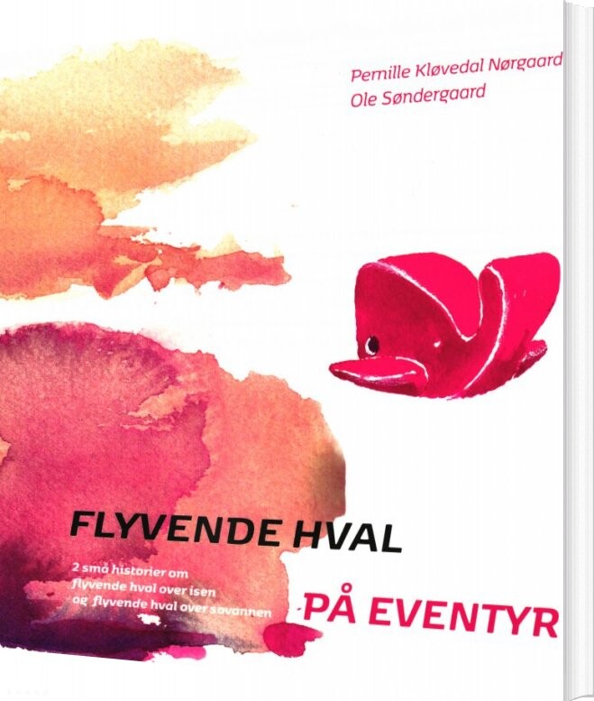 Billedbog med den flyvende røde hval der flyver over Grønland og Afrika, hvor den ser is, bjerge,...