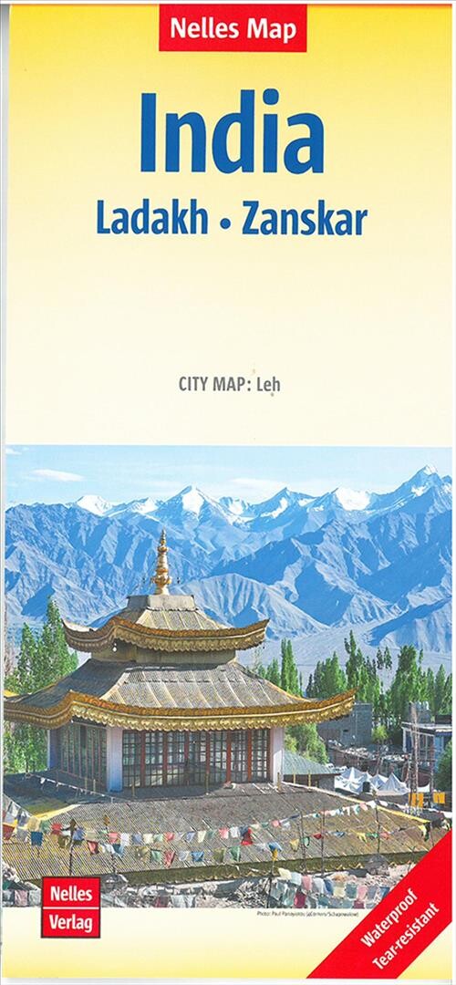 Revideret udgave 2017. Falset landkort i målestokken 1:350.000 med indsat bykort over Leh og den...
