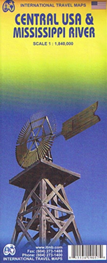 Falset kort i målestokken 1:1,84 mill. med register, trykt på dobbeltsidet papir. 17 stater med...