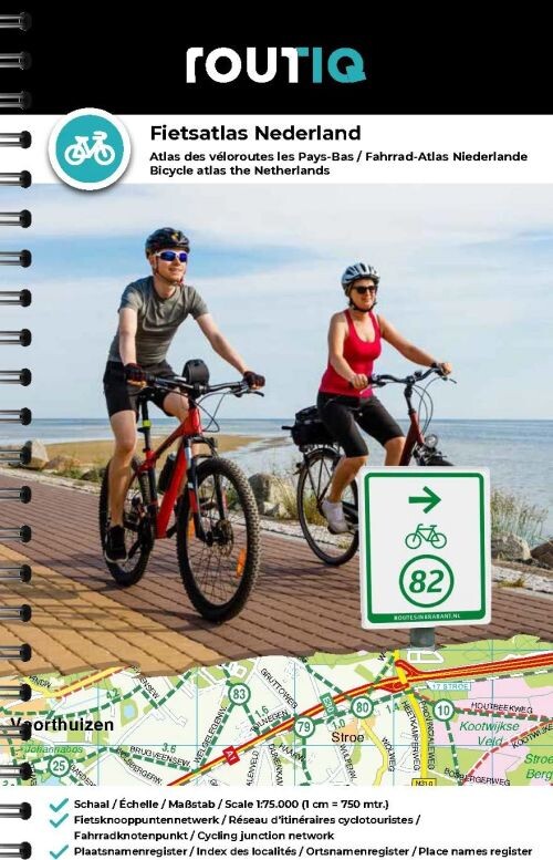 Routiqs cykelatlas indeholder 366 sider med kort over hele Holland. Bogen har spiralryg og et...
