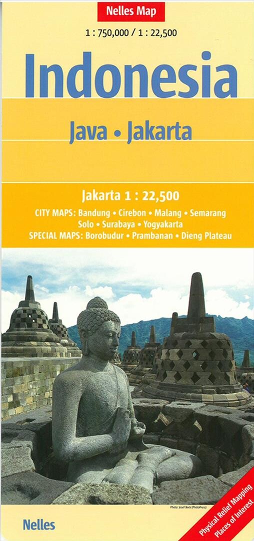 Falset kort i målestokken 1:22.500, med indsat kort over Jakarta samt Bandung, Cirebon, Malang,...