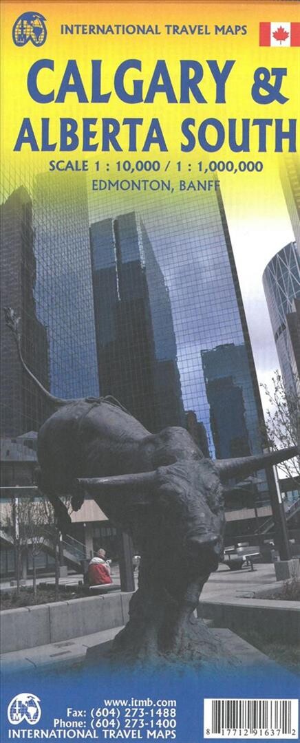 Falset kort i målestokken 1:10.000 over Calgary og 1:1.000.000 over det sydlige Alberta. Indsatte...