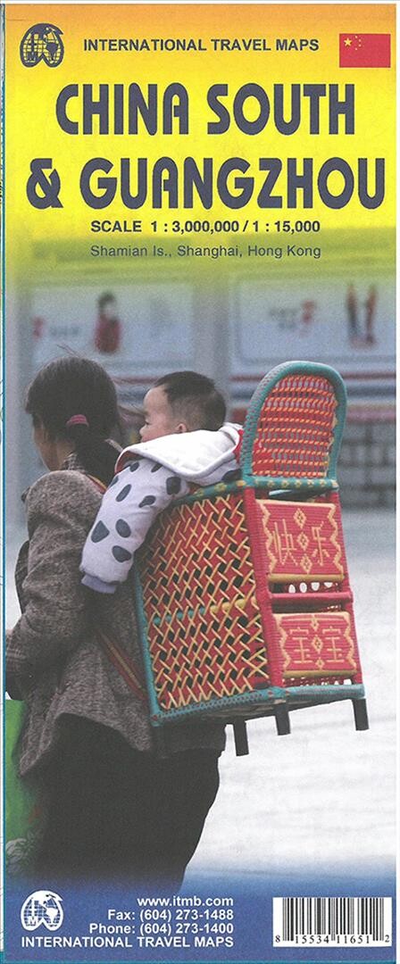 Double-sided map of China South in scale 1:3 mio. and Guangzhou in 1:15.000. Insert maps of Shanghai...