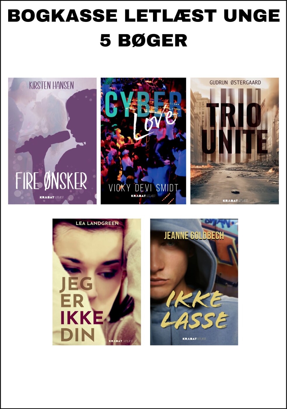 Bogkasse med 5 letlæst bøger for unge. Trænger du til en pause fra skærmen og en god historie?...