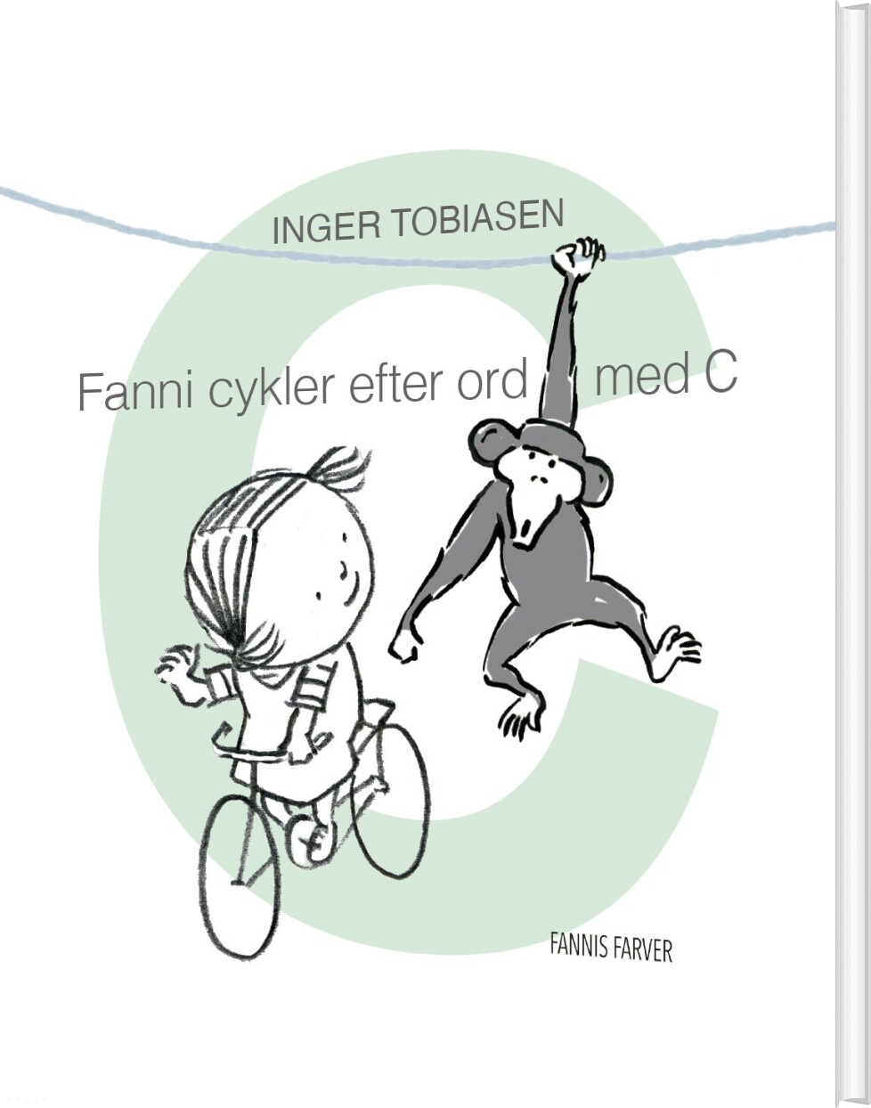 Fanni tegner en cykel, for hun ved at cykel starter med C. Så sætter hun sig på cyklen og cykler...