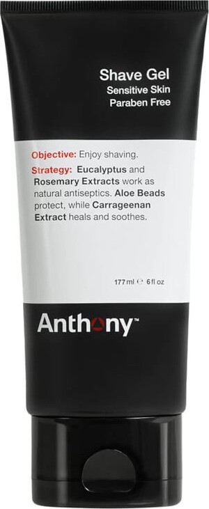 Anthony barbergel indeholder aloe perler til at lindre, glycerin til at fugte og tang til at dulme...