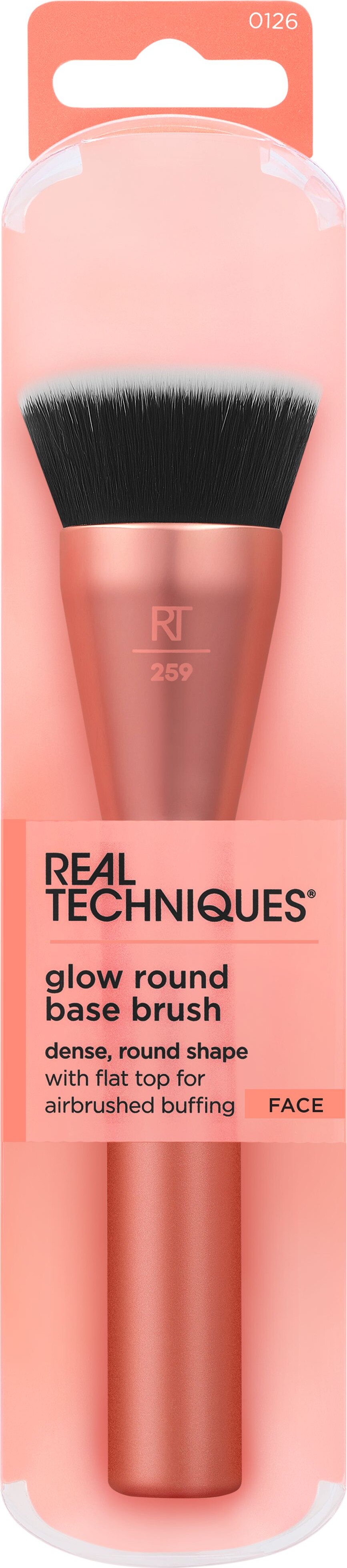 Real Techniques Glow Round Base Foundation Brush tilbyder en rund og flad børstehårssektion, der...