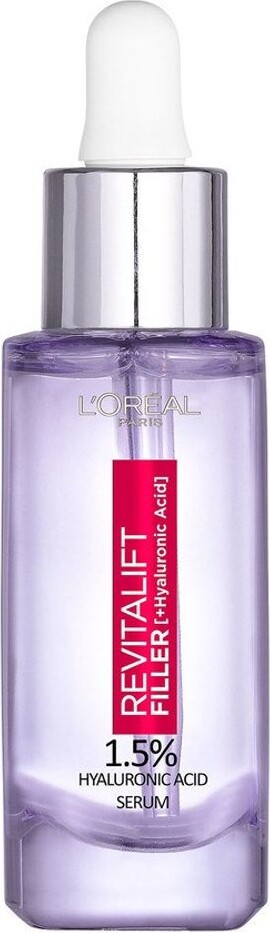 L'Oréal - Revitalift Filler Serum mod Rynker er den perfekte løsning til dig, der ønsker at mindske tegn på aldring og få en mere strålende hud. Dette serum er beriget med hyaluronsyre, som effektivt fugter huden og hjælper med at opnå en fyldigere og mere ungdommelig teint.