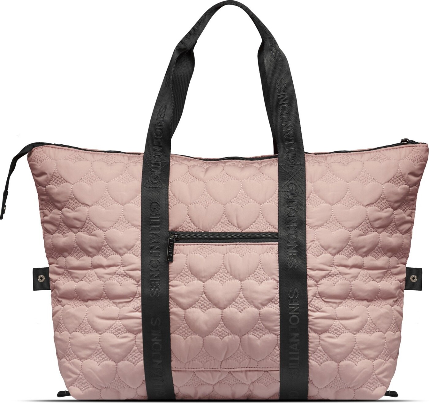 Gillian Jones præsenterer en skøn taske med hjerte quiltet print i en elegant rosa farve. Denne taske er ikke kun et stilfuldt accessory, men også en praktisk løsning til hverdagsbrug.