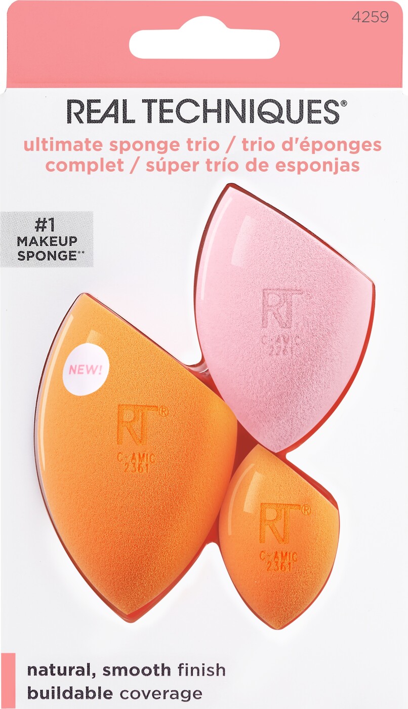 Real Techniques - Ultimate Sponge Trio er det perfekte værktøj til at opnå en fejlfri make-up. Dette sæt indeholder tre svampe i forskellige størrelser og former, der gør det nemt at påføre foundation, concealer og meget mere.