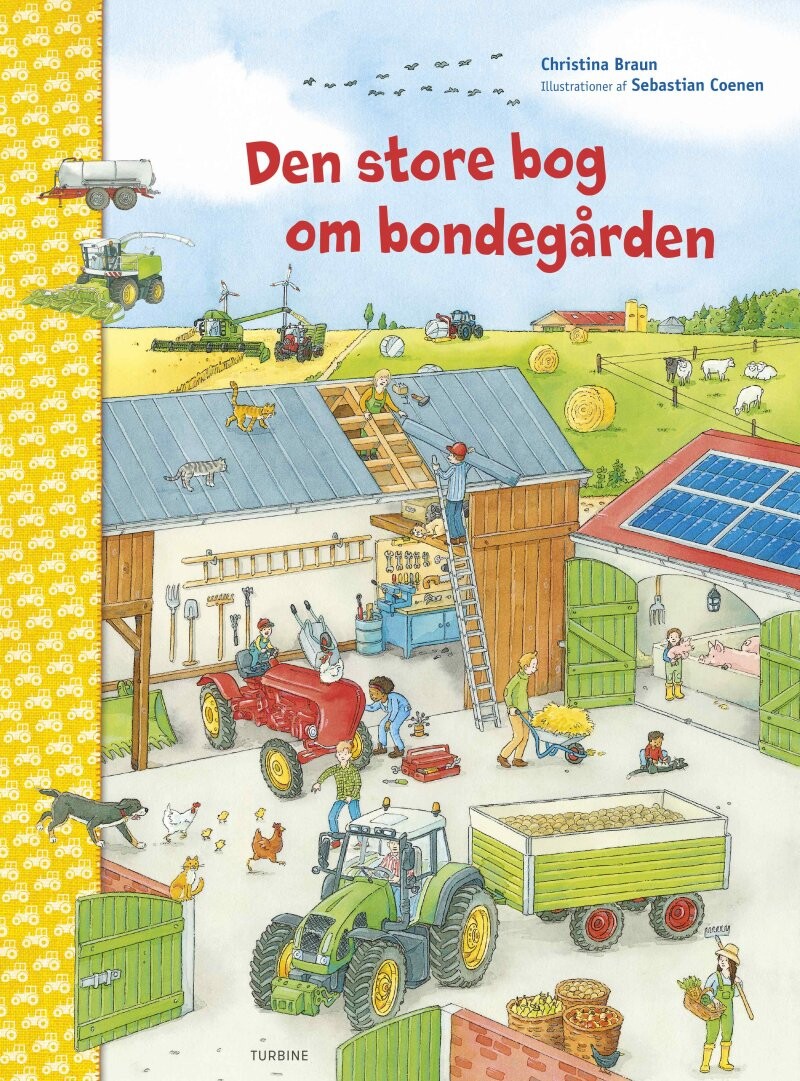 Traktorer, bondegårdsdyr, mejetærskere og meget mere - der er masser at kigge på i Den store bog...