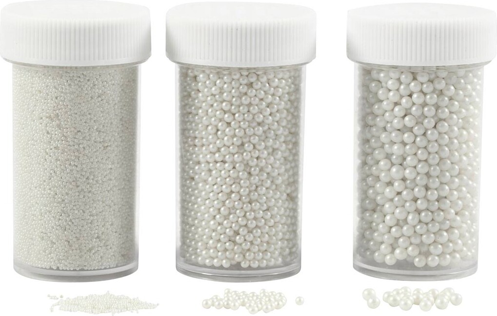 Små Mini Glaskugler - Perlemor - Str. 0,6-0,8+1,5-2+3 Mm - 3x45 G