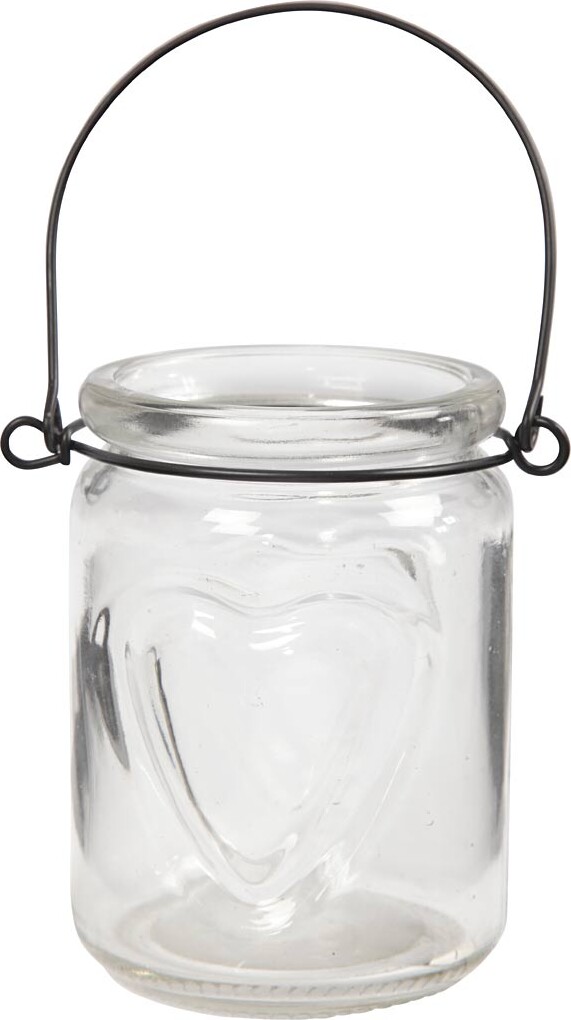Disse lanterner kommer i en pakke med 12 lanterner i klart glas med relief af et hjerte og et sort...