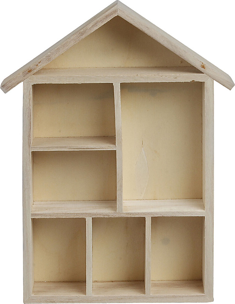 Fin sættekasse til udstilling af forskellige ting. Sættekassen er af lyst træ og har 7...