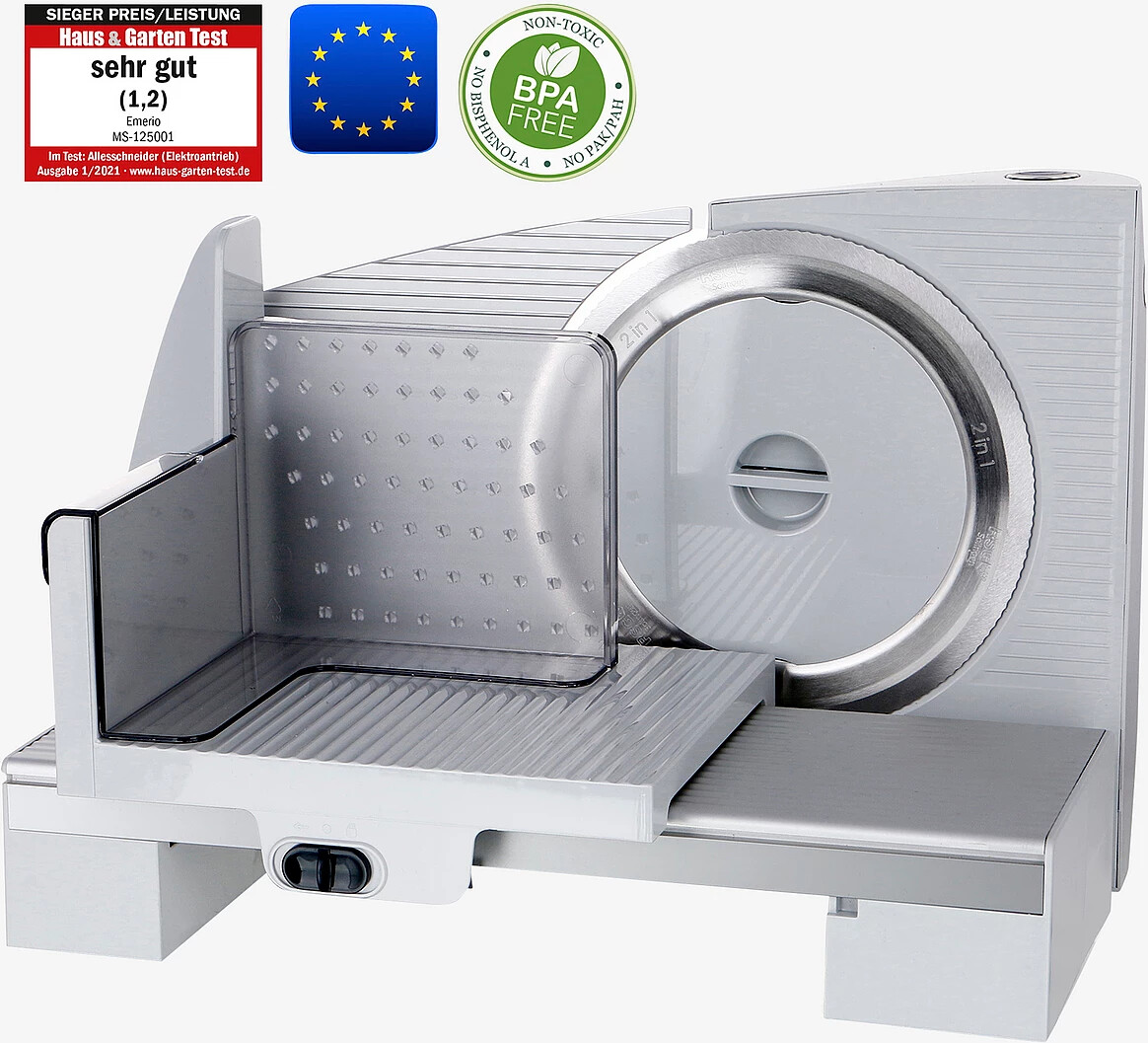 Emerio MS-125001 pålægsmaskine er en praktisk og effektiv maskine, der gør det nemt at skære...