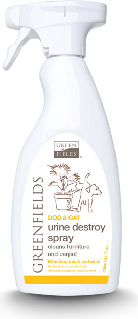 Urin Destroy Spray fra Greenfields hjælper med at fjerne urinlugt og pletter. Sprayen indeholder...