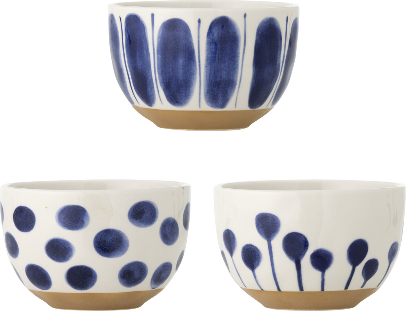 Linora Skålene fra Creative Collection er et smukt sæt af 3 stentøjsskåle med blå mønstre, der...
