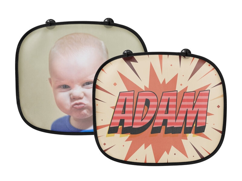 Solskærm med et personligt design? Ja tak! Sommerens alle bilbårne eventyr blev lige 100% bedre med disse smarte solskærme. Sælges i 2-pak.