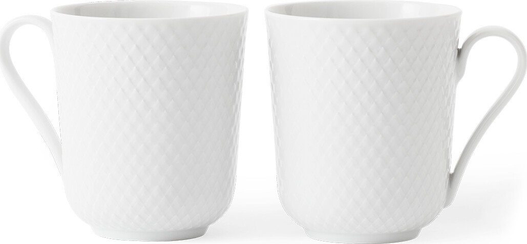 Lyngby Porcelæn - Rhombe Hvid Krus Med Hank 33 Cl - Sæt Af 2