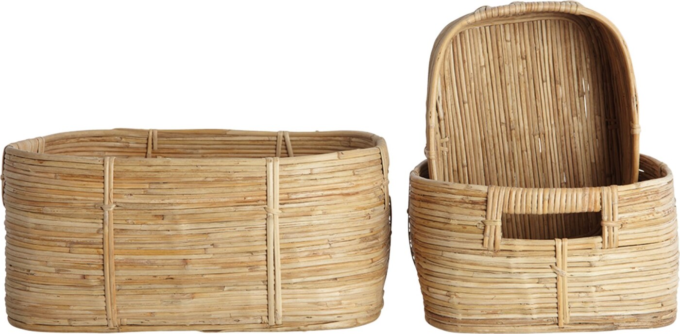Kurvene er fremstillet af naturlige materialer, hvilket giver dem et unikt og rustikt udseende. Den neutrale farve passer perfekt ind i enhver indretning, uanset om du har en moderne, minimalistisk eller mere traditionel stil. Med deres alsidighed kan de bruges i stuen, soveværelset eller endda på badeværelset til at organisere dine skønhedsprodukter.