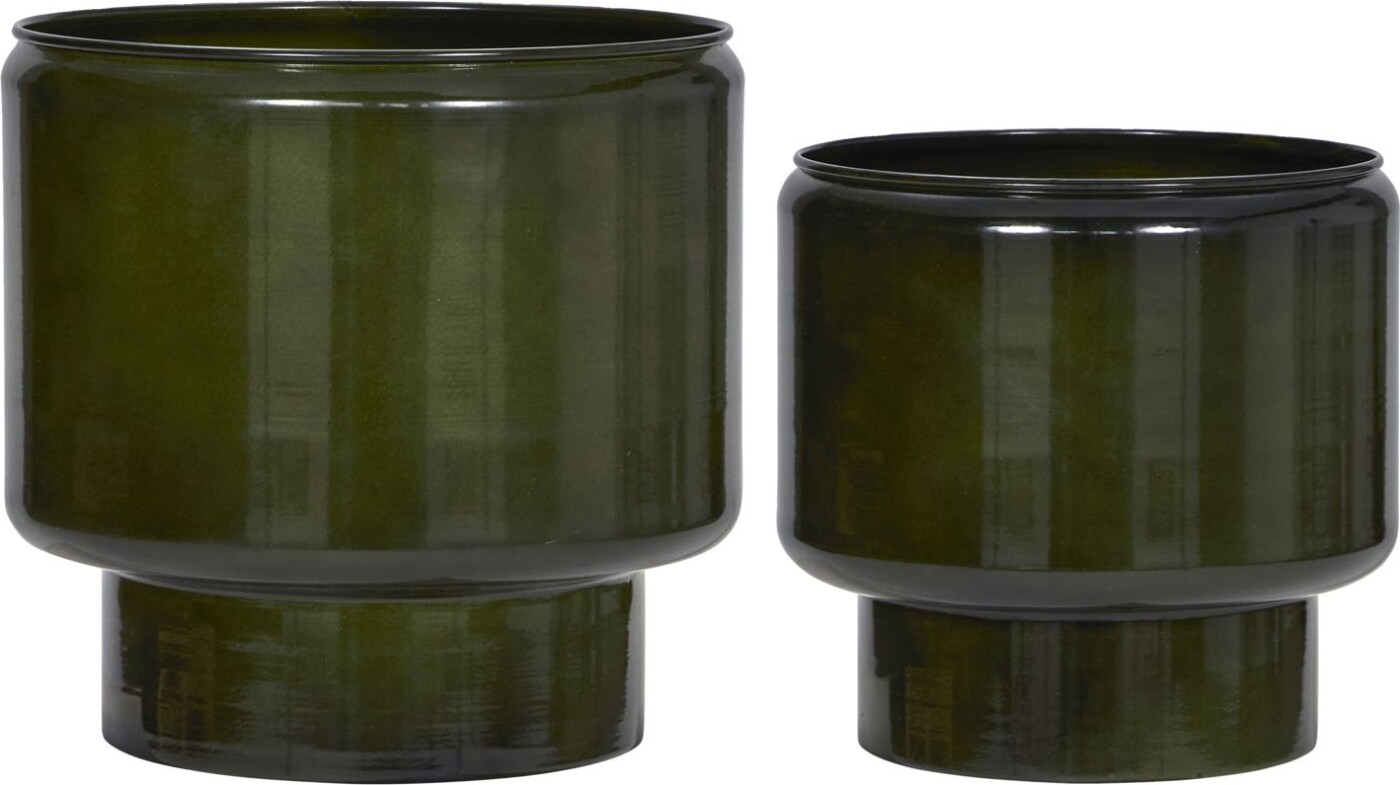 Forvandl dit hjem med de elegante House Doctor krukker, der kommer i et praktisk sæt med to forskellige størrelser: Ø 30 cm og Ø 36 cm. Disse smukke krukker i en dyb, grøn farve tilføjer et friskt og livligt udtryk til ethvert rum, både indendørs og udendørs.