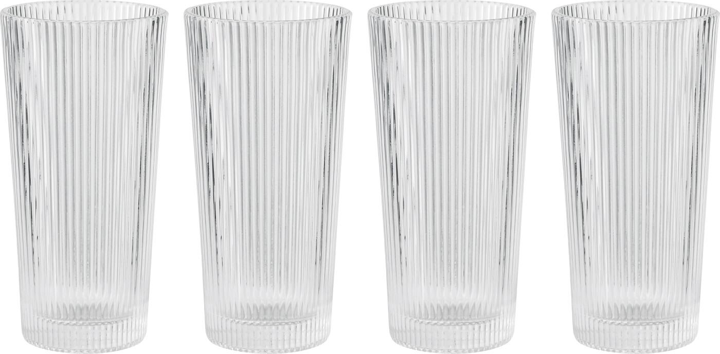 Hver glas rummer 300 ml, hvilket gør dem ideelle til longdrinks, cocktails, sodavand og meget mere. Den perfekte størrelse gør dem velegnede til både hverdagens sjov og festlige anledninger. Med et sæt af 4 glas kan du nemt dække op til familie og venner, når der skal serveres drinks.