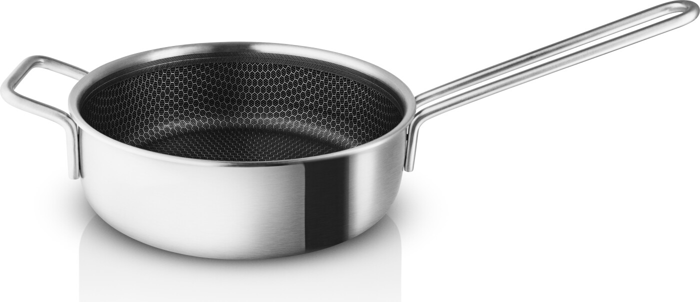 Den ergonomiske håndtag designet sikrer et godt greb, hvilket muliggør nem håndtering, selv når panden er fuld. Sauterpanden er også velegnet til brug på alle varmekilder, herunder induktion, hvilket gør den alsidig og praktisk.