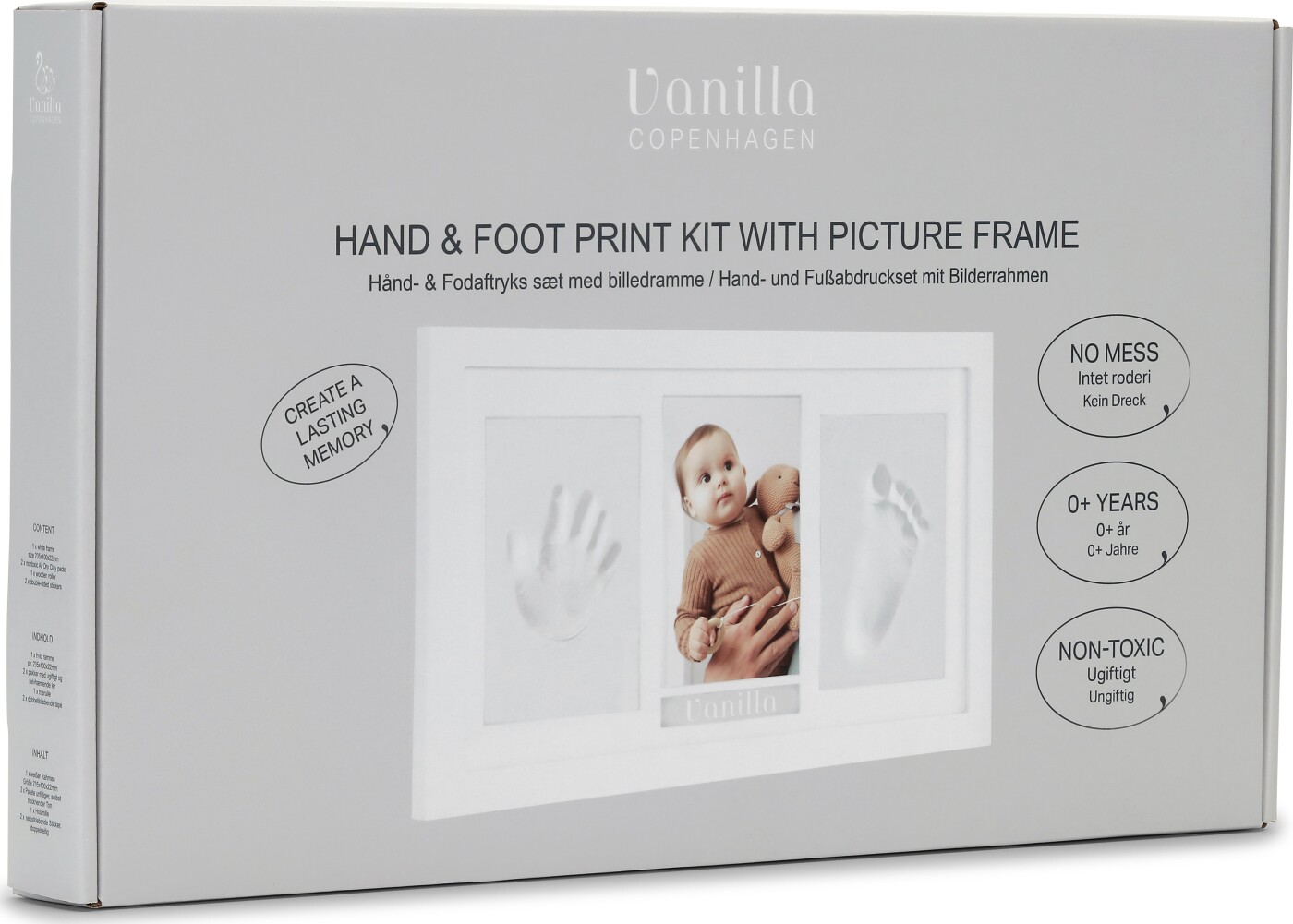 Vanilla Copenhagen Hånd Og Fodaftryk - Hvid - Stor er den ideelle måde at bevare dyrebare minder på. Dette produkt giver dig mulighed for at skabe et unikt hånd- eller fodaftryk af dit barn, som du kan værdsætte for altid.